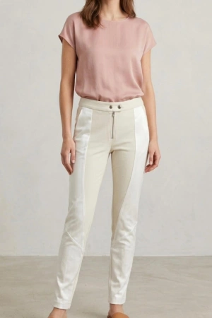 Kadın Çift Renkli Kumaş Pantolon - Beyaz